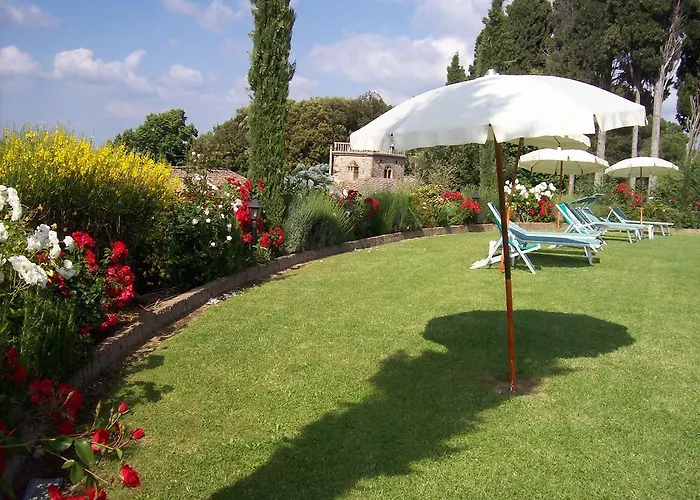 Die Strandeinrichtungen wie Lounge-Sessel und Sonnenschirme werden in dieser Villa Agriturismo Il Casolare Di Bucciano angeboten.